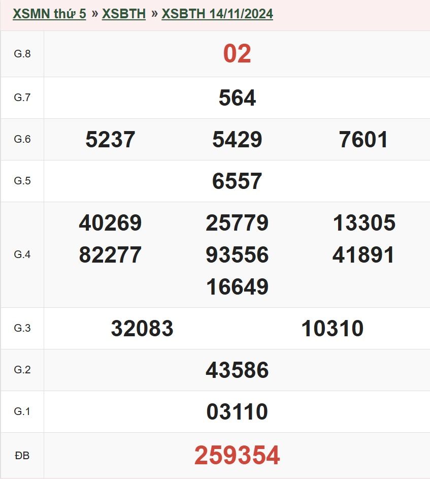 Giải Đặc Biệt đài Bình Thuận CHƯA XUẤT HIỆN từ đầu năm đến nay 05/12/2024 | Đã xuất hiện trong năm 2023 | |||