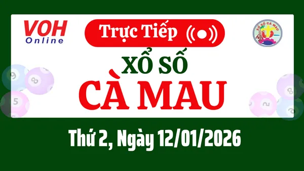 Xổ số Cà Mau hôm nay 12/1/2026 được cập nhật trực tiếp lúc 16h10 từ trường quay.