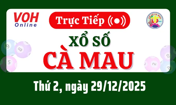 Xổ số Cà Mau hôm nay 29/12/2025 được cập nhật trực tiếp lúc 16h10 từ trường quay.