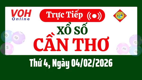 Xổ số Cần Thơ hôm nay 4/2/2026 được cập nhật trực tiếp lúc 16h10 từ trường quay.