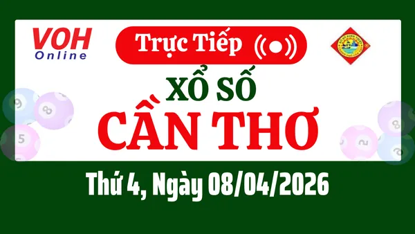 Xổ số Cần Thơ hôm nay 8/4/2026 được cập nhật trực tiếp lúc 16h10 từ trường quay.