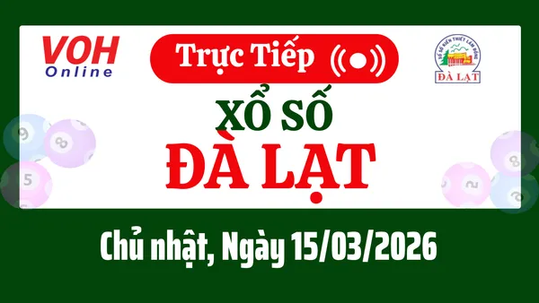 Xổ số Đà Lạt hôm nay 15/3/2026 được cập nhật trực tiếp lúc 16h10 từ trường quay.
