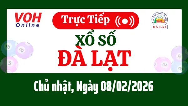 Xổ số Đà Lạt hôm nay 8/2/2026 được cập nhật trực tiếp lúc 16h10 từ trường quay.