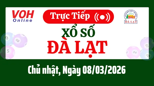 Xổ số Đà Lạt hôm nay 8/3/2026 được cập nhật trực tiếp lúc 16h10 từ trường quay.