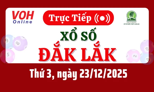 Xổ số Đắk Lắk hôm nay 23/12/2025 được cập nhật trực tiếp lúc 17h10 từ trường quay.
