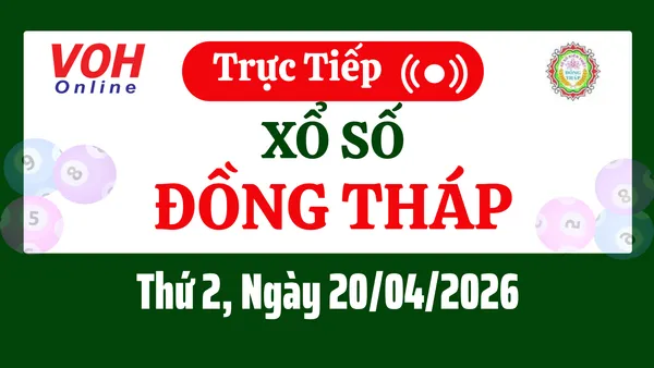 Xổ số Đồng Tháp hôm nay 20/4/2026 được cập nhật trực tiếp lúc 16h10 từ trường quay.