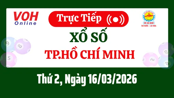 Xổ số TP.HCM hôm nay 16/3/2026 được cập nhật trực tiếp lúc 16h10 từ trường quay.