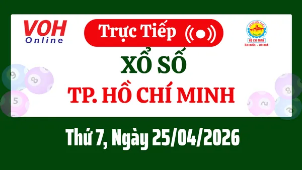 Xổ số TP.HCM hôm nay 25/4/2026 được cập nhật trực tiếp lúc 16h10 từ trường quay.