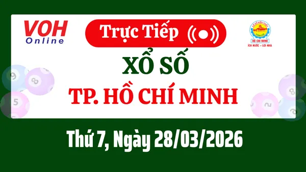 Xổ số TP.HCM hôm nay 28/3/2026 được cập nhật trực tiếp lúc 16h10 từ trường quay.