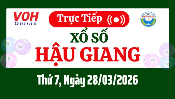 Xổ số Hậu Giang hôm nay 28/3/2026 được cập nhật trực tiếp lúc 16h10 từ trường quay.