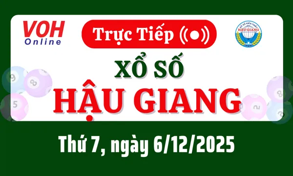 Xổ số Hậu Giang hôm nay 6/12/2025 được cập nhật trực tiếp lúc 16h10 từ trường quay.