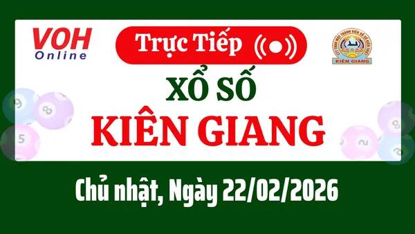Xổ số Kiên Giang hôm nay 22/2/2026 được cập nhật trực tiếp lúc 16h10 từ trường quay.
