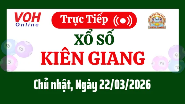 Xổ số Kiên Giang hôm nay 22/3/2026 được cập nhật trực tiếp lúc 16h10 từ trường quay.