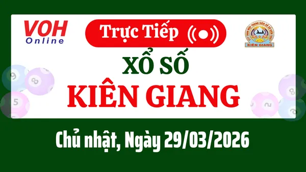 Xổ số Kiên Giang hôm nay 29/3/2026 được cập nhật trực tiếp lúc 16h10 từ trường quay.