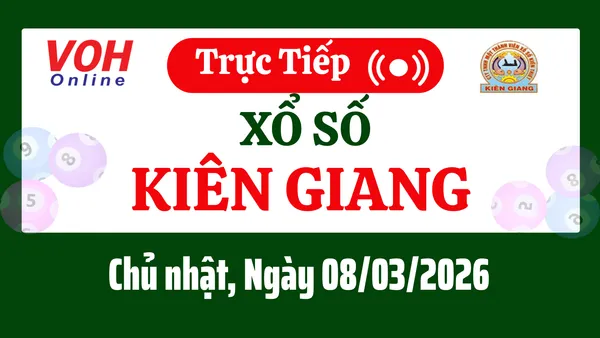 Xổ số Kiên Giang hôm nay 8/3/2026 được cập nhật trực tiếp lúc 16h10 từ trường quay.