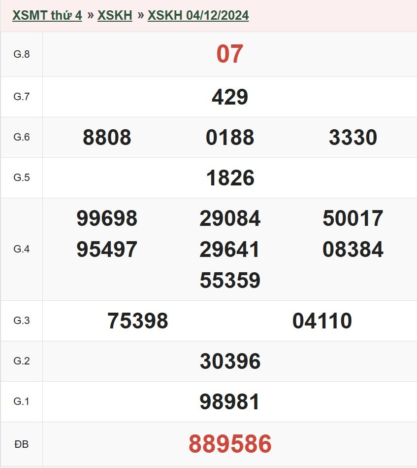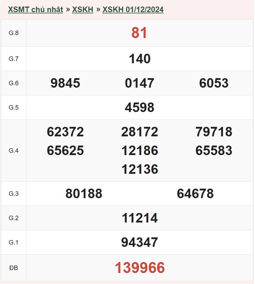 Thống kê giải đặc biệt Khánh Hòa chủ nhật ngày 8/12/2024