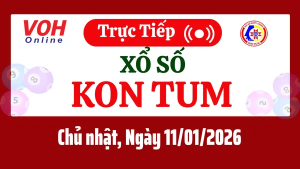 Xổ số Kon Tum hôm nay 11/1/2026 được cập nhật trực tiếp lúc 17h10 từ trường quay.
