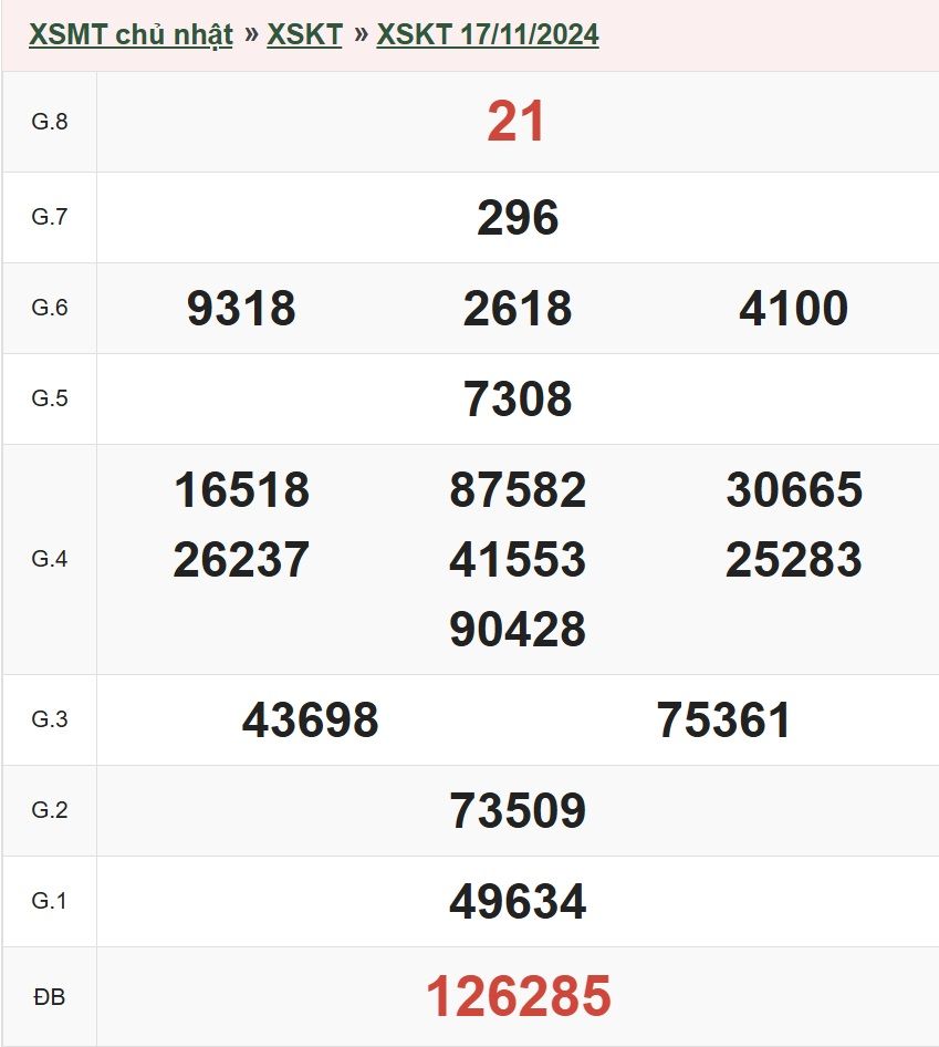 Thống kê giải đặc biệt Kon Tum chủ nhật ngày 24/11/2024