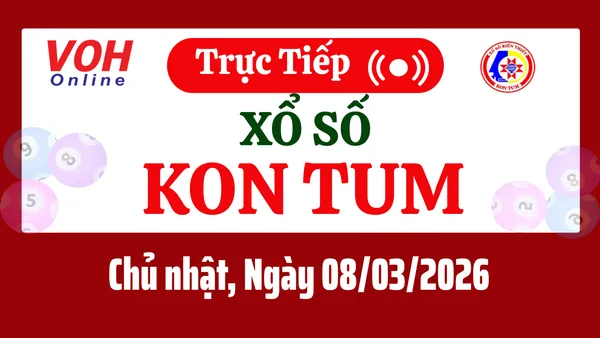 Xổ số Kon Tum hôm nay 8/3/2026 được cập nhật trực tiếp lúc 17h10 từ trường quay.