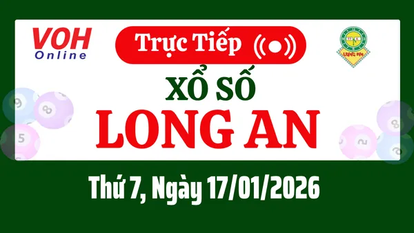 Xổ số Long An hôm nay 17/1/2026 được cập nhật trực tiếp lúc 16h10 từ trường quay.