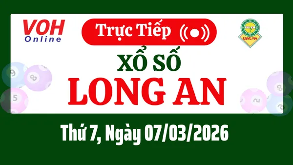Xổ số Long An hôm nay 7/3/2026 được cập nhật trực tiếp lúc 16h10 từ trường quay.