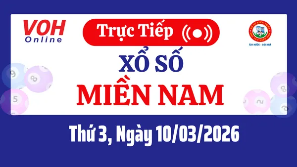 Xổ số miền Nam hôm nay 10/3/2026 được cập nhật trực tiếp lúc 16h10 từ trường quay. Các đài quay thưởng XSMN hôm nay thứ 3 gồm có: Bạc Liêu, Bến Tre, Vũng Tàu.