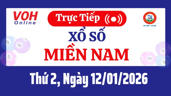 Xổ số miền Nam hôm nay 12/1/2026 được cập nhật trực tiếp lúc 16h10 từ trường quay. Các đài quay thưởng XSMN hôm nay thứ 2 gồm có: TP.HCM, Cà Mau, Đồng Tháp.