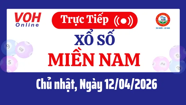 Xổ số miền Nam hôm nay 12/4/2026 được cập nhật trực tiếp lúc 16h10 từ trường quay. Các đài quay thưởng XSMN hôm nay chủ nhật gồm có: Kiên Giang, Đà Lạt, Tiền Giang.