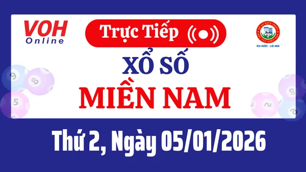 Xổ số miền Nam hôm nay 5/1/2026 được cập nhật trực tiếp lúc 16h10 từ trường quay. Các đài quay thưởng XSMN hôm nay thứ 2 gồm có: TP.HCM, Cà Mau, Đồng Tháp.