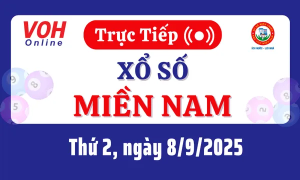 Xổ số miền Nam hôm nay 8/9/2025 được cập nhật trực tiếp lúc 16h10 từ trường quay. Các đài quay thưởng XSMN hôm nay thứ 2 gồm có: TP.HCM - Đồng Tháp - Cà Mau.