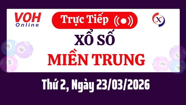 Kết quả xổ số miền Trung hôm nay thứ 2 ngày 23/03/2026 được tường thuật trực tiếp nhanh chóng và chính xác nhất với 2 đài: Huế, Phú Yên. Buổi quay số sẽ bắt đầu vào lúc 17h10. Hãy cùng theo dõi để không bỏ lỡ buổi trực tiếp XSMT hôm nay.