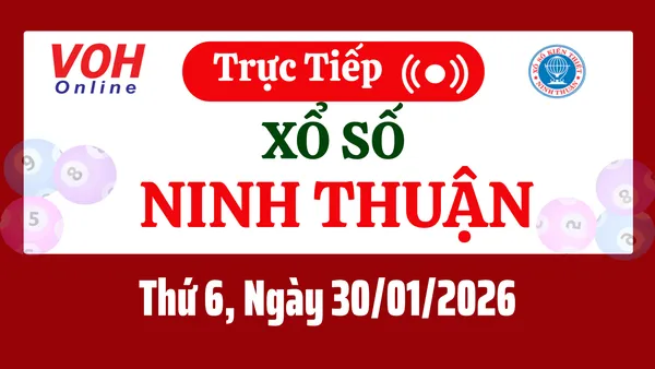 Xổ số Ninh Thuận hôm nay 30/1/2026 được cập nhật trực tiếp lúc 17h10 từ trường quay.