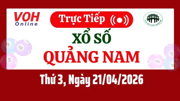 Xổ số Quảng Nam hôm nay 21/4/2026 được cập nhật trực tiếp lúc 17h10 từ trường quay.