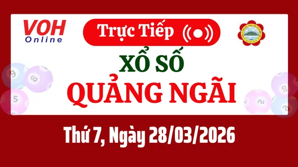 Xổ số Quảng Ngãi hôm nay 28/3/2026 được cập nhật trực tiếp lúc 17h10 từ trường quay.