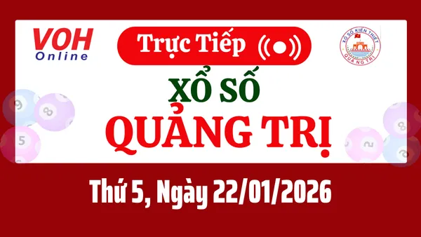 Xổ số Quảng Trị hôm nay 22/1/2026 được cập nhật trực tiếp lúc 17h10 từ trường quay.