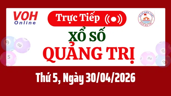 Xổ số Quảng Trị hôm nay 30/4/2026 được cập nhật trực tiếp lúc 17h10 từ trường quay.