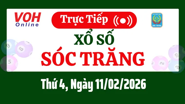 Xổ số Sóc Trăng hôm nay 11/2/2026 được cập nhật trực tiếp lúc 16h10 từ trường quay.