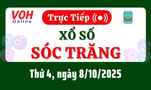 Xổ số Sóc Trăng hôm nay 8/10/2025 được cập nhật trực tiếp lúc 16h10 từ trường quay.