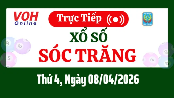 Xổ số Sóc Trăng hôm nay 8/4/2026 được cập nhật trực tiếp lúc 16h10 từ trường quay.