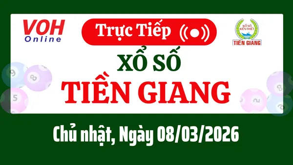 Xổ số Tiền Giang hôm nay 8/3/2026 được cập nhật trực tiếp lúc 16h10 từ trường quay.