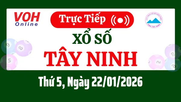 Xổ số Tây Ninh hôm nay 22/1/2026 được cập nhật trực tiếp lúc 16h10 từ trường quay.