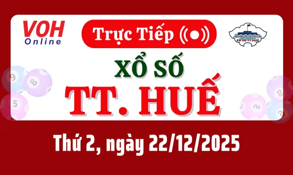 Xổ số Thừa Thiên Huế hôm nay 22/12/2025 được cập nhật trực tiếp lúc 17h10 từ trường quay.