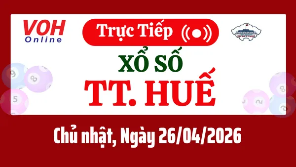 Xổ số Thừa Thiên Huế hôm nay 26/4/2026 được cập nhật trực tiếp lúc 17h10 từ trường quay.