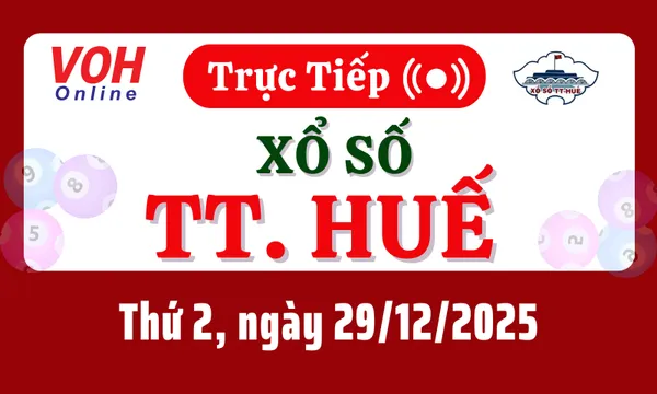 Xổ số Thừa Thiên Huế hôm nay 29/12/2025 được cập nhật trực tiếp lúc 17h10 từ trường quay.