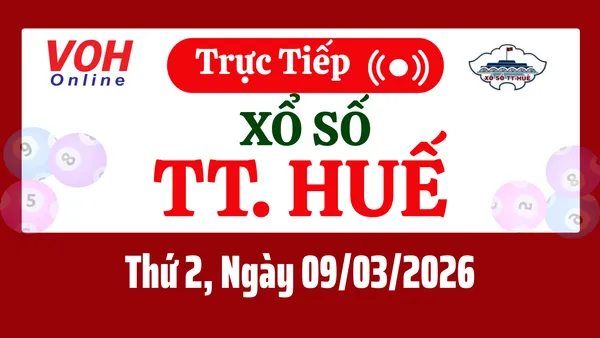 Xổ số Thừa Thiên Huế hôm nay 9/3/2026 được cập nhật trực tiếp lúc 17h10 từ trường quay.