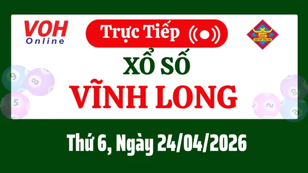 Xổ số Vĩnh Long hôm nay 24/4/2026 được cập nhật trực tiếp lúc 16h10 từ trường quay.