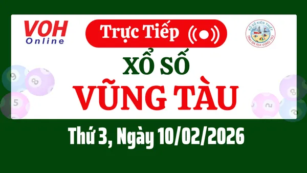 Xổ số Vũng Tàu hôm nay 10/2/2026 được cập nhật trực tiếp lúc 16h10 từ trường quay.