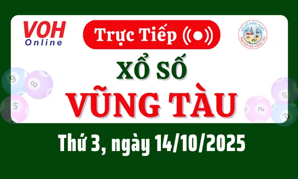 Xổ số Vũng Tàu hôm nay 14/10/2025 được cập nhật trực tiếp lúc 16h10 từ trường quay.
