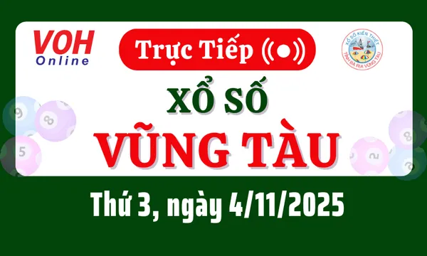 Xổ số Vũng Tàu hôm nay 4/11/2025 được cập nhật trực tiếp lúc 16h10 từ trường quay.